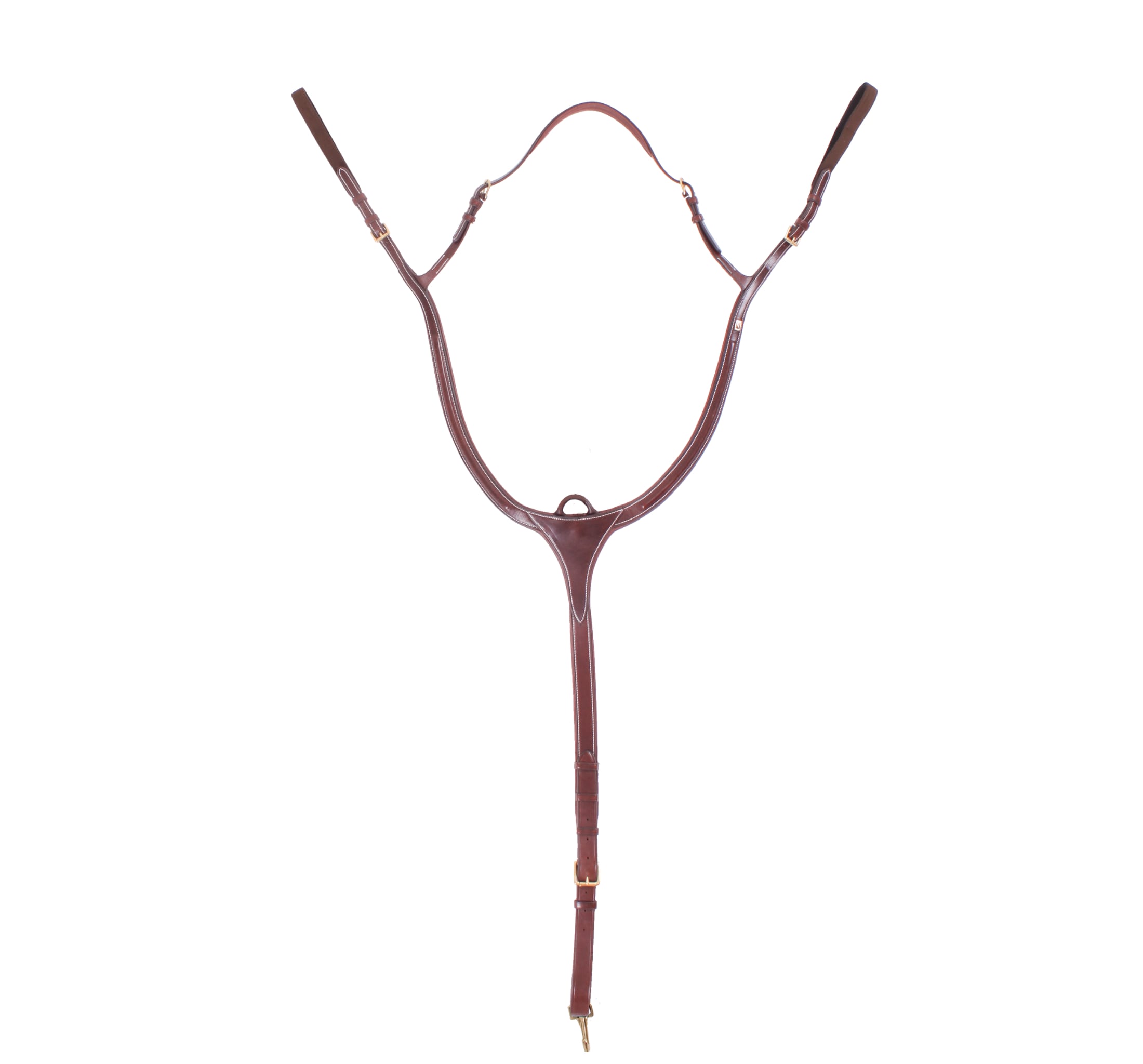 Rundgenähter Sattelriemen - Braun/Messing