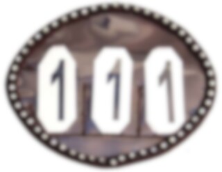 Mit diesem braunen Startnummernschild mit Bling in klaren Steinen stechen Sie aus der Menge heraus! Dieses Turniernummernschild ist 12 cm breit und 10 cm hoch, hat drei Nummern und sowohl Klettverschluss als auch eine Sicherheitsnadel auf der Rückseite.