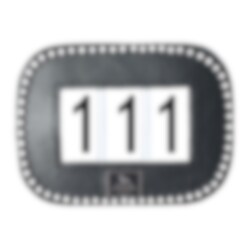 Das Nummernschild hat abgerundete Ecken und ein Rand mit klaren Kristallen verläuft um das Nummernschild herum auf einem Weiß Hintergrund. Das Nummernschild hat 3 Ziffern, sodass Sie Nummern von 001 bis 999 anzeigen können, und lässt sich einfach mit der zugehörigen Sicherheitsnadel an der Schabracke befestigen.