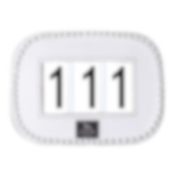 Das Nummernschild hat abgerundete Ecken und ein Rand mit klaren Kristallen verläuft um das Nummernschild herum auf einem Weiß Hintergrund. Das Nummernschild hat 3 Ziffern, sodass Sie Nummern von 001 bis 999 anzeigen können, und lässt sich einfach mit der zugehörigen Sicherheitsnadel an der Schabracke befestigen.