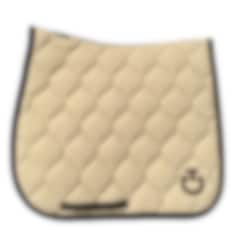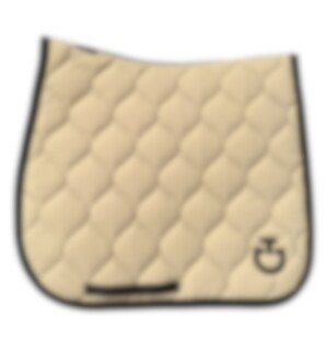 Diese Dressurschabracke von Cavalleria Toscana ist mit seiner New Circular Steppung unglaublich stilvoll. Die Dressurschabracke „Circular Quilted Jersey“ ist in Beige gehalten und hat ein schwarzes CT-Logo, eine Einfassung und einen Kanal entlang des Rückens mit dem Cavalleria Toscana-Logo auch dort.