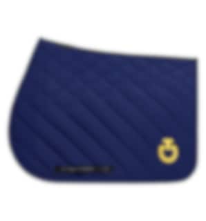Cavalleria Toscana CT Diamond and Lines Springschabracke in einem blau-gelben Design.