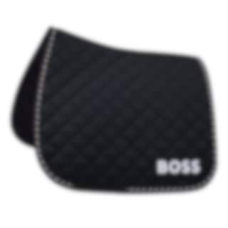 Die Dressurschabracke Signature von Boss Equestrian ist eine hochwertige Dressurschabracke aus feuchtigkeitsabweisendem Fleece mit Logostickerei und einer Signatur-Einfassung für optimale Sattelposition und Stil.