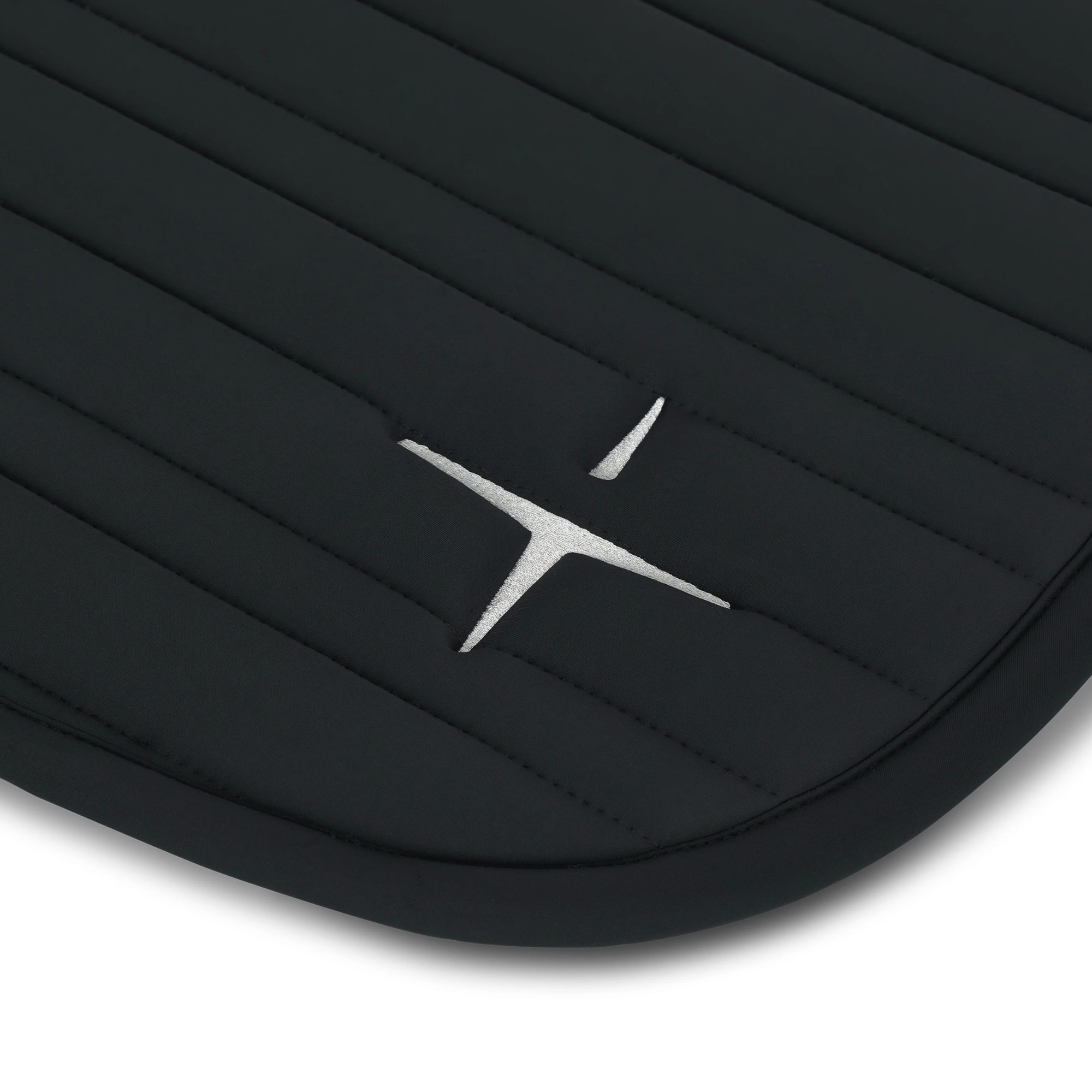 Die anatomische Form und die Liniensteppung sorgen dafür, dass das Schabracke stabil unter dem Sattel liegt, ohne Druckstellen zu verursachen, während der gestickte Trolle-Stern auf der linken Seite ein dezentes, wiedererkennbares Detail setzt.