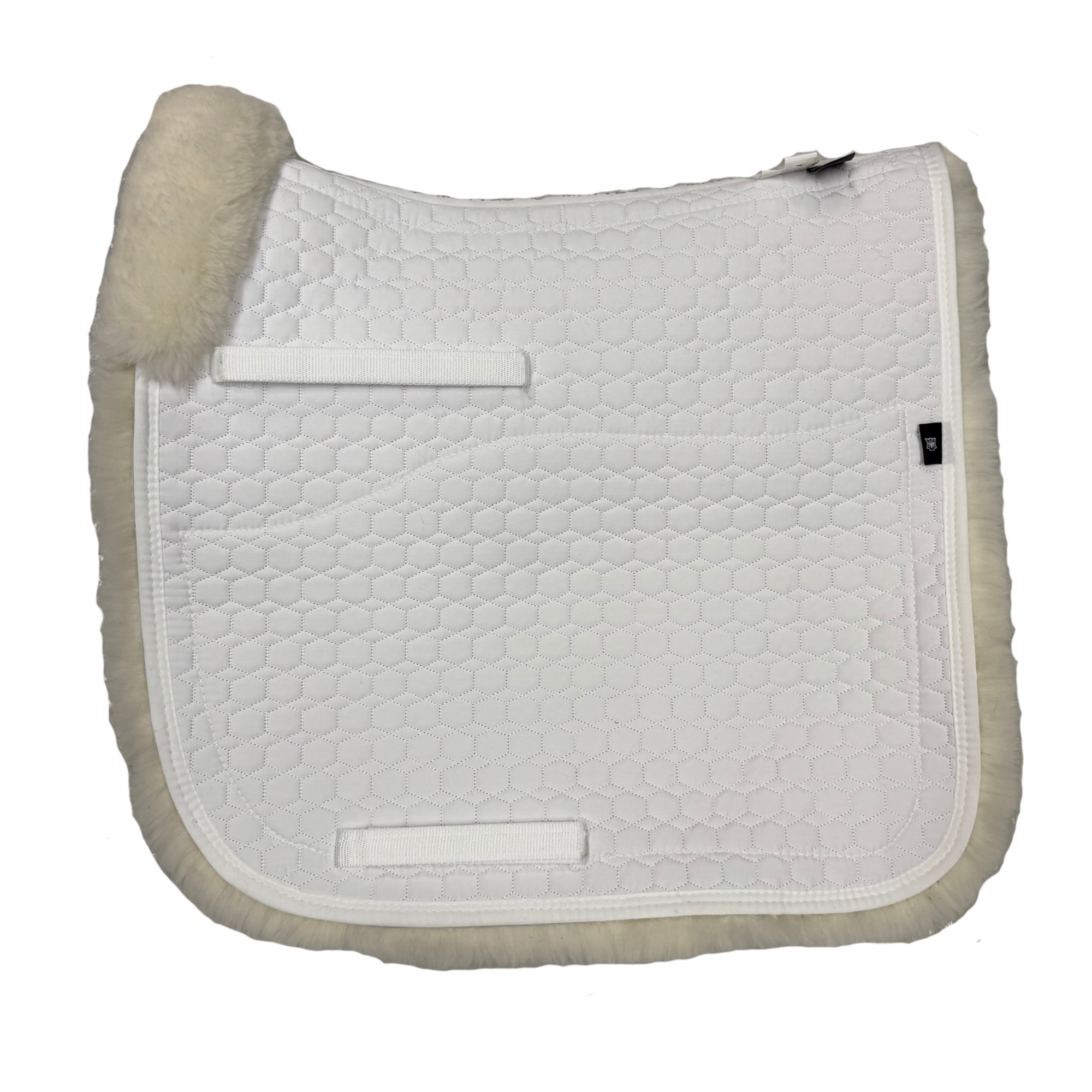 Wunderschöne weiße Dressurschabracke von EA Mattes mit Innenkante aus hochwertigem Lammfell.