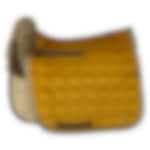 Die Lammfellschabracke ist in der Farbe Curry mit Lammfell in der Farbe Schlamm und zwei wunderschönen Zierkordeln entlang des Schabrackenrands gefertigt.