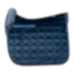 Dies ist eine Lammfellschabracke von höchster Qualität, mit einem integrierten Lammfellpad im Inneren. Die Kanäle verlaufen auf beiden Seiten der Wirbelsäule des Pferdes sowie um das Vorderzwiesel des Sattels. Das Lammfell hilft, den Druck zu verteilen und Feuchtigkeit vom Pferd abzuleiten. Die Oberseite der Schabracke besteht aus edlem Samt.