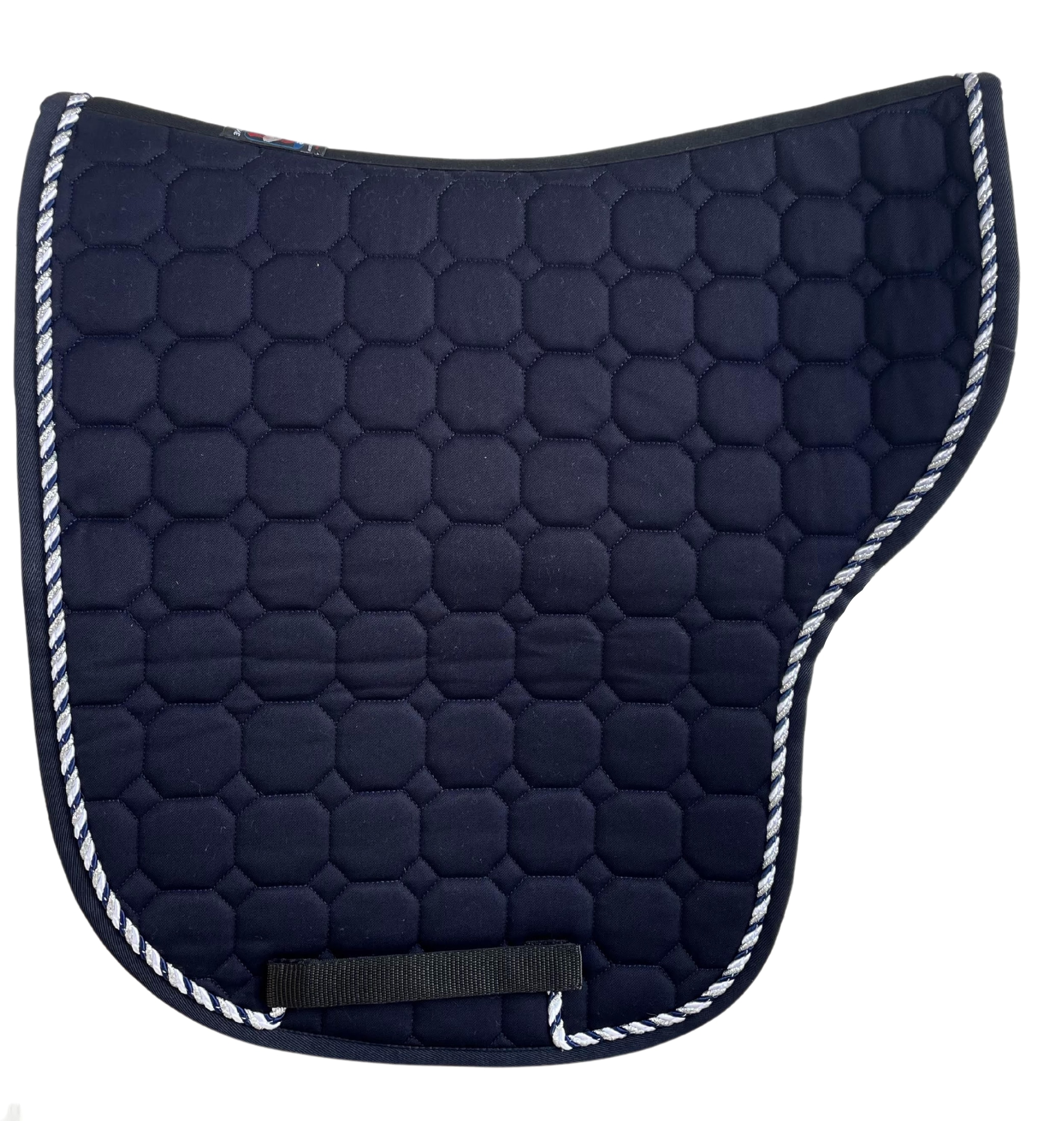 Dieses Sattelpad ist in Marineblau gehalten und verfügt über eine dreifarbige Schnur in Weiß/Silber/Marine. Das Pad besticht durch das elegante Quilting des Octagon-Modells und die gewohnte, fantastische Qualität aller Schabracks von Equiline.