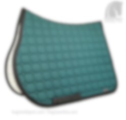 Wunderschöne grüne Springschabracke mit Octagon Steppung, schwarzem Rand und schwarzer glitzernder Zierkordel von Equiline.