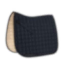 Schlichte, marineblaue Dressurschabracke mit einer Unterseite aus Faux Fur.
