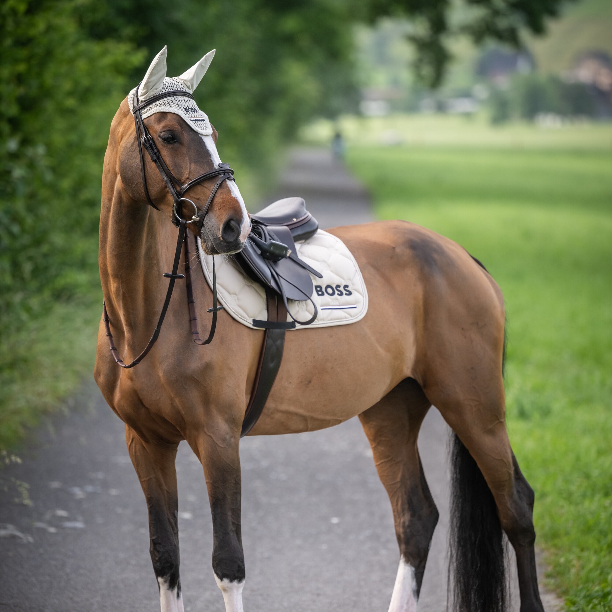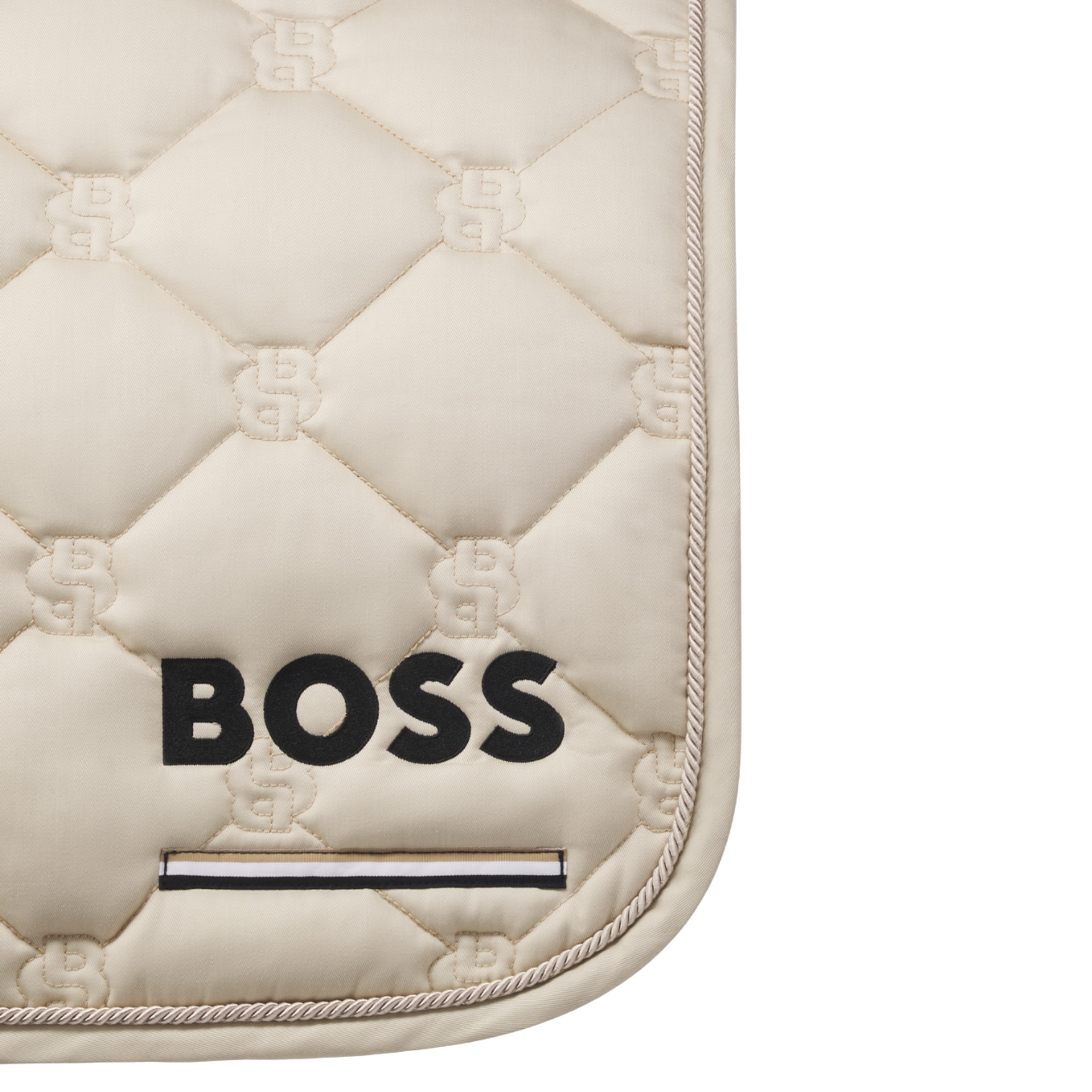 Springschabracke Cheltenham von BOSS Equestrian ist aus einer sorgfältig ausgewählten Materialmischung gefertigt und mit einer eleganten Steppung im ikonischen Double-B-Muster sowie einem BOSS-Logo versehen, was der Schabracke ein stilvolles Design verleiht.
