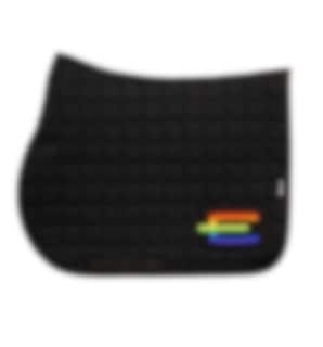 Springschabracke in Schwarz mit Rainbow E-Logo.