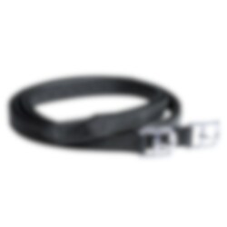 Schöne schwarze Steigbügelriemen von Schockemöhle. Sehr weiche Steigbügelriemen aus vorbehandeltem Rindsleder. Die Riemen bestehen aus dreifachem Leder mit Nylonverstärkung, damit sie sich nicht dehnen können. Die Löcher und Schnallen liegen eng beieinander für eine gute Passform neben dem Sattel. Helle Ziernähte. Auf Lager in den Größen 145 und 155 cm. Andere Längen können bestellt werden.