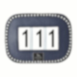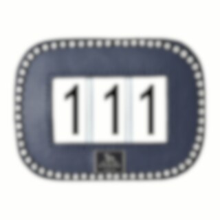Das Nummernschild hat abgerundete Ecken und ein Rand mit klaren Kristallen verläuft um das Nummernschild herum auf einem marineblauen Hintergrund. Das Nummernschild hat 3 Ziffern, sodass Sie Nummern von 001 bis 999 anzeigen können, und lässt sich einfach mit der zugehörigen Sicherheitsnadel an der Schabracke befestigen.