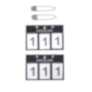 Turniernummern von Kingsland, die mit einer Sicherheitsnadel an der Schabracke befestigt werden. Einfach zu handhaben und zu entfernen. Befestigen Sie sie beispielsweise am Zügel, wenn das Pferd abgesattelt wird.