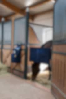 Stabiler und stilvoller Boxentürvorhang mit schöner klassischer Steppung. Der Boxentürvorhang misst 95x50 cm und verfügt über eine funktionelle, anpassungsfähige Aufhängung. In der Öffnung der Boxentür wird ein „Door Gate“ verwendet, um dem Pferd mehr Gelegenheit zu geben, an dem Geschehen rund um die Box teilzunehmen, und gleichzeitig effektiv zu verhindern, dass das Pferd entkommt. Der Boxenvorhang von Eskadron ist stilvoll und hochwertig.