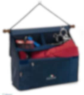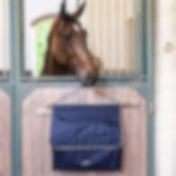 Praktische Boxentasche von Equiline. Die Boxentasche hat ein großes Fach, das Sie abteilen können, ein kleineres Fach oben und ein Fach mit Reißverschluss vorne.