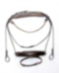 Cayenne ist eine Finesse Bridle mit flach genähtem Leder, mittelbreitem Nasenriemen und geschwungenem Stirnband. Finesse Bridle ist eine anatomische Trense mit einem völlig einzigartigen Genickstück, das Druck und Muskelschäden in der Nacken- und Halsmuskulatur des Pferdes verhindert. Die Trense ist mit einem dünnen Stirnband mit stylischem Klinker in Messing ausgestattet.