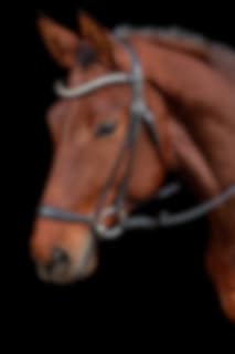 Elegante hannoveranische Trense mit gefüttertem hannoveranischen Nasenriemen, der an der breitesten Stelle 35 mm breit ist und über ein Polster an der Schnalle verfügt, um das Kinn des Pferdes zu schützen. Der Nasenriemen verfügt auf beiden Seiten über Schnallen zur Anpassung an das weich gepolsterte anatomische Genickstück. Die seitlichen Ringe am Nasenriemen positionieren den hannoveranischen Nasenriemen perfekt im 90-Grad-Winkel. Das Stirnband dieser hannoveranischen Trense verfügt über einen Schnellverschluss, so dass es leicht ausgetauscht werden kann, wenn Sie ein anderes Stirnband bevorzugen.