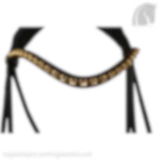 Das Stirnband an dieser schönen OS-Trense ist im Modell Tiffany XL mit 8 mm großen Swarovski-Kristallen in der Farbe Topaz, goldumrandet, passend zu den Messingschnallen an der Trense.