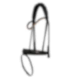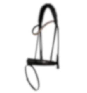 Der Nasenriemen im Modell Comfort XS 5 cm ist an der breitesten Stelle 5 cm breit und verjüngt sich zu den Seiten hin, wo das Pferd weniger Platz für das Gebiss hat. Der Verschluss des Nasenriemens wird zurückgeschnallt.