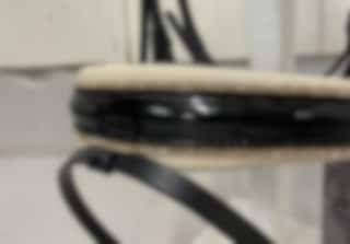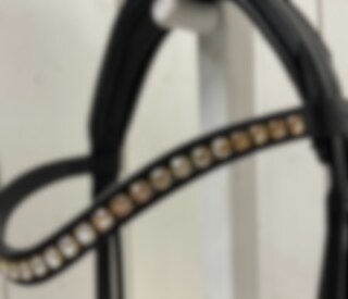 Dies ist eine schwarze rundgenähte München Feel Good Trense mit dem etwas breiteren, gut gepolsterten Genickstück, das Feel Good genannt wird, weil es weicher am Nacken des Pferdes anliegt. Der Nasenriemen dieser rundgenähten Trense ist im Modell Comfort XS und 5 cm breit, was bedeutet, dass der Nasenriemen an den Seiten schmaler ist, wo das Pferd am wenigsten Platz am Gebiss hat. Der Nasenriemen hat eine schwedische Verschnallung, d.h. er wird zurückgenköpft. Der Nasenriemen ist lackiert und mit einer Swarovski-Fineline-Dekoration versehen. Er hat eine weiche Polsterung in einer hellen seidigen Farbe, die außergewöhnlich schön zu einem hellen Fux oder Palomino passt.