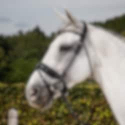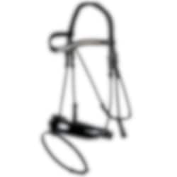 Diese schöne rundgenähte Trense hat viele Funktionen. Der Nasenriemen ist ergonomisch, lackiert und extra breit mit dünner werdenden, bogenförmigen Seiten für ein geringeres Risiko von Quetschverletzungen zwischen Gebiss und Nasenriemen und wird mit einem Pullback geschlossen.