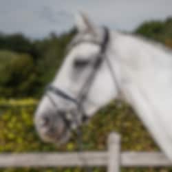 Diese schöne rundgenähte Trense hat viele Funktionen. Der Nasenriemen ist ergonomisch und extra breit mit dünner werdenden, bogenförmigen Seiten für ein geringeres Risiko von Quetschverletzungen zwischen Gebiss und Nasenriemen und wird mit einem Pullback geschlossen.
