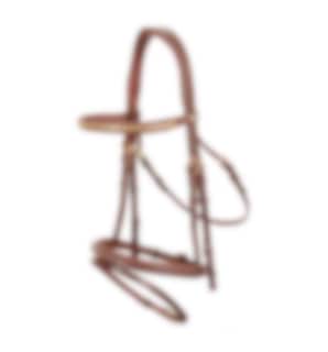 Die Trense verfügt über einen kombinierten, gepolsterten Nasenriemen mit stilvoller Ziernaht. Das ergonomisch geformte Genickstück ist weich gepolstert und sorgt für eine optimale Passform.