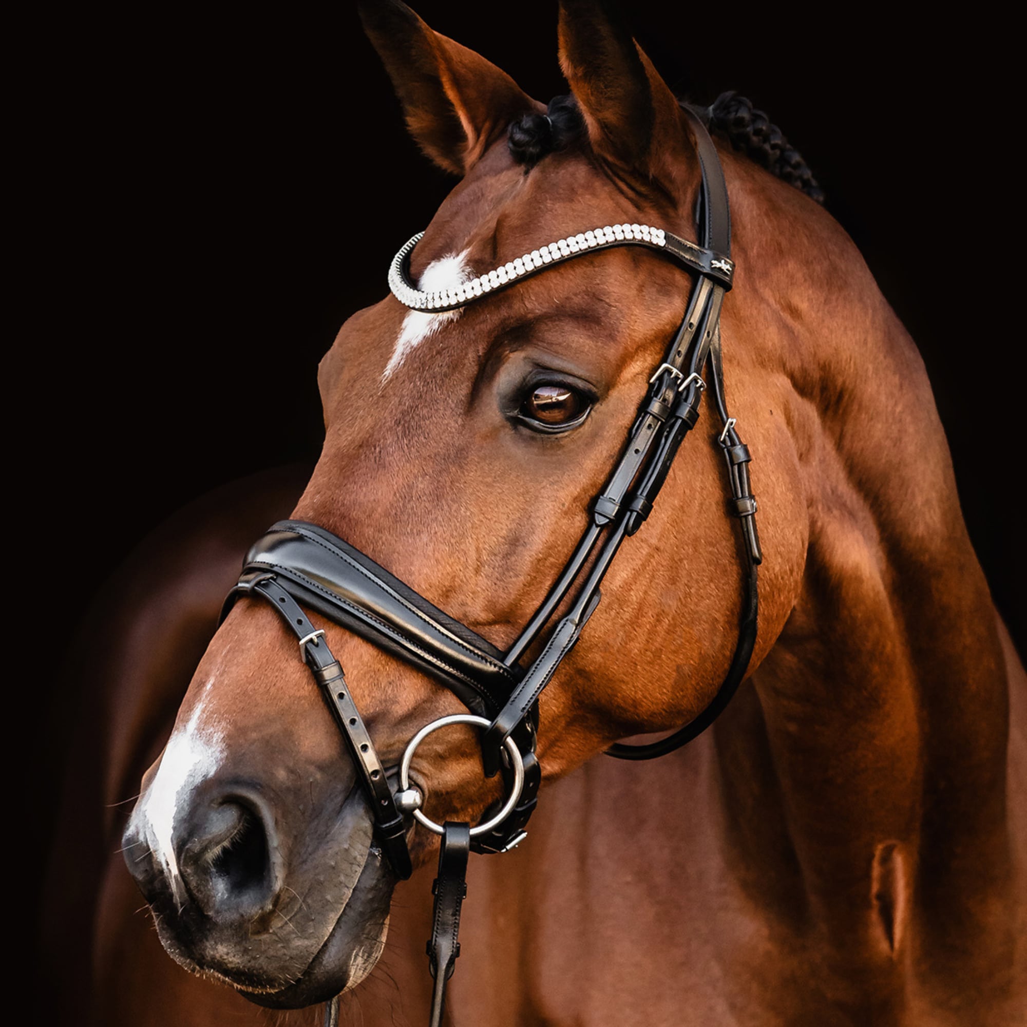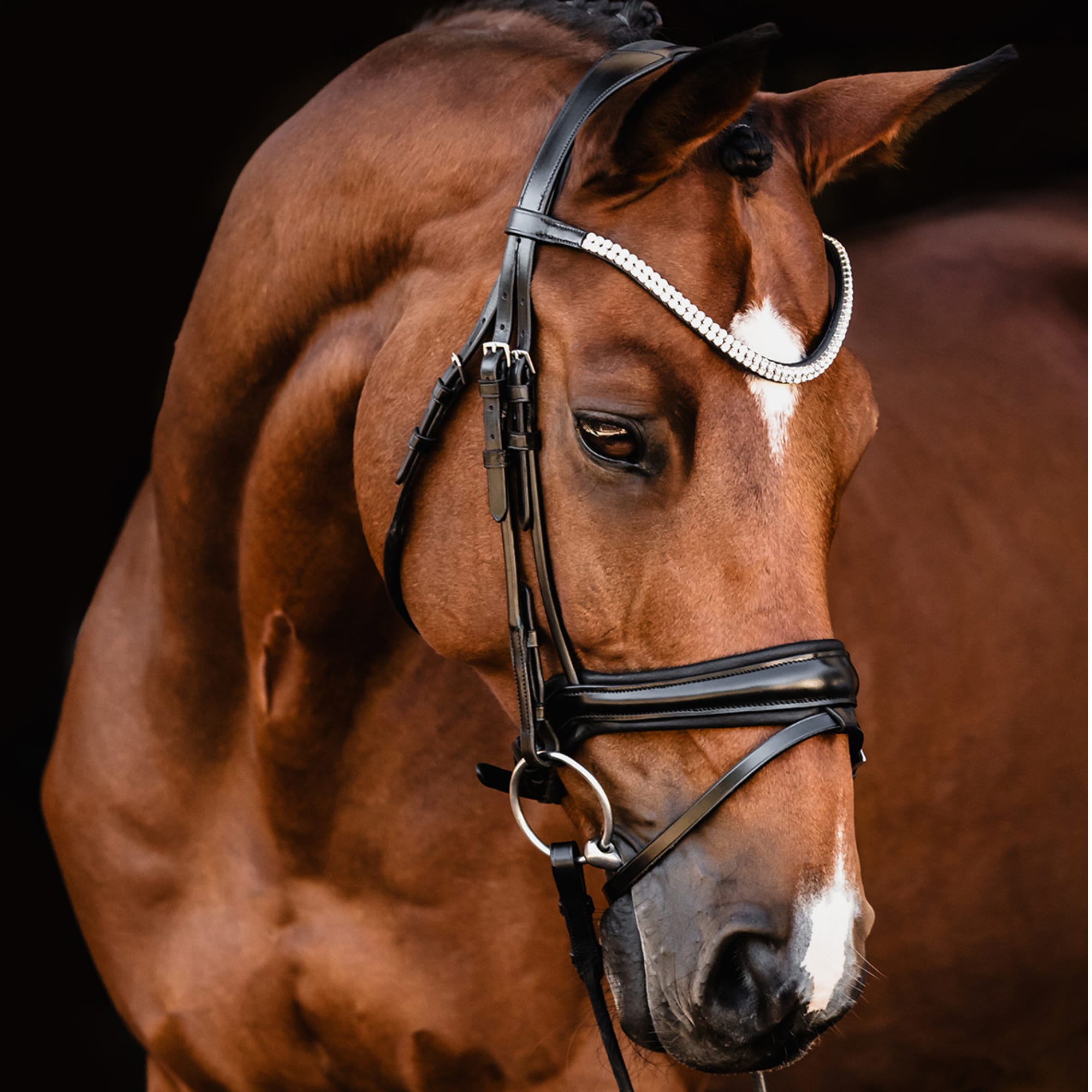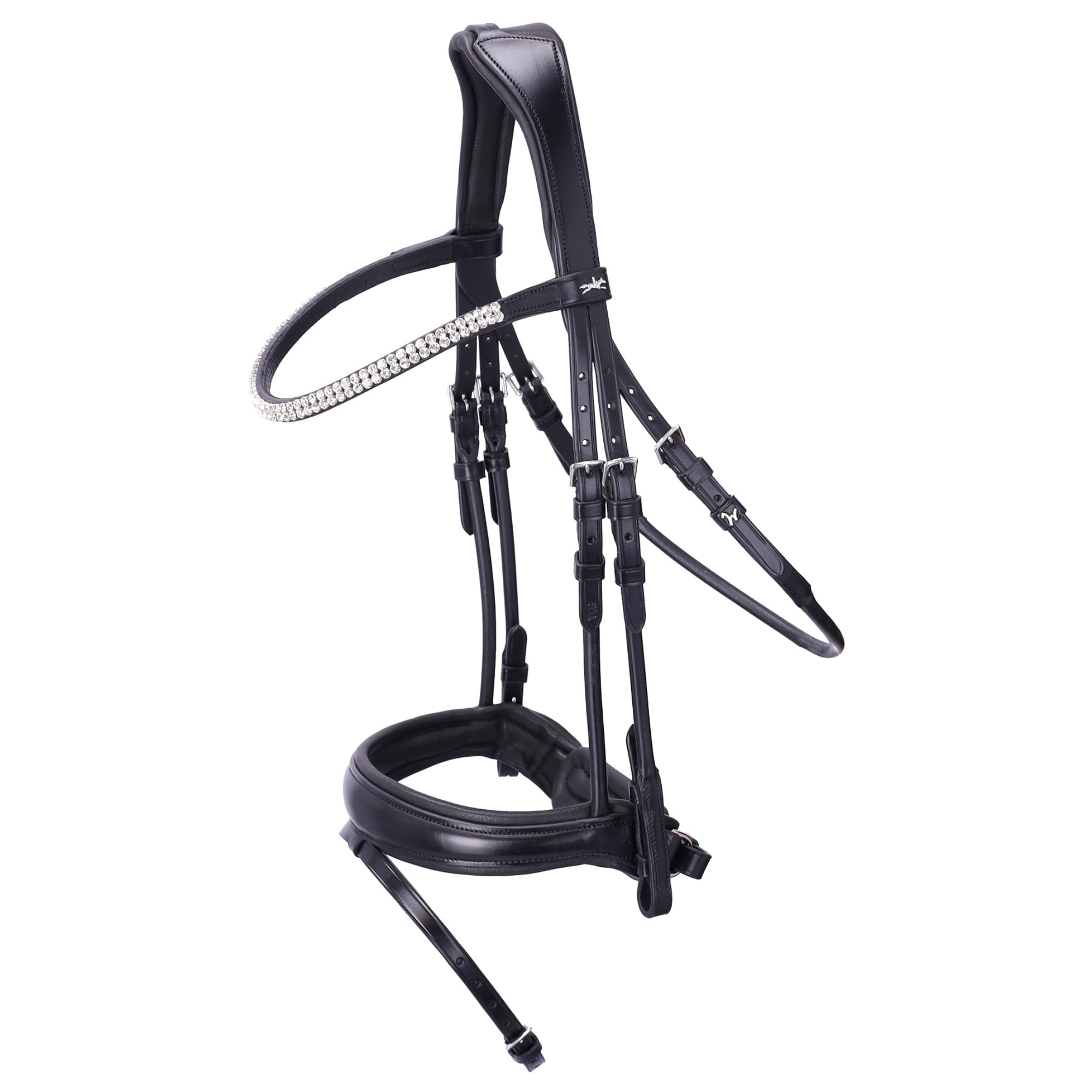 Die Trense Johnny aus der exklusiven Isabell Werth Kollektion ist anatomisch geformt und für optimale Passform und Komfort entwickelt. Sie verfügt über rundgenähte Seitenteile und einen Kehlriemen, ein vorgeformtes Spezialreithalfter mit spezieller anatomischer Polsterung, weich gepolsterte und eingelassene D-Ringe am Reithalfter, ein anatomisches Kopfstück mit bewährter Passform sowie ein schmales Stirnband mit zwei Reihen eleganter, eckiger Kristalle.