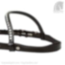 Der Nasenriemen ist ein 4 cm XS, was bedeutet, dass er in der Mitte 4 cm breit ist und sich zu den Seiten hin verjüngt, wo das Pferd am wenigsten Platz am Gebiss hat. Das Stirnband hat Swarovski-Kristalle in der Variante Tiffany XL in der Farbe Crystal. Die Trense ist aus exklusivem Leder von höchster Qualität gefertigt.