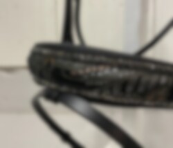 Dies ist eine schwarze Warendorf Feel Good Trense mit einem etwas breiteren, gut gepolsterten Genickstück, das den Namen Feel Good trägt, weil es weicher am Nacken des Pferdes anliegt. Die Lederriemen der Warendorf Trense sind schmal und ohne sichtbare Schnallen an den Seiten (außer am Nasenriemen). Die versteckten Schnallen machen die Trense äußerst schlicht und elegant.