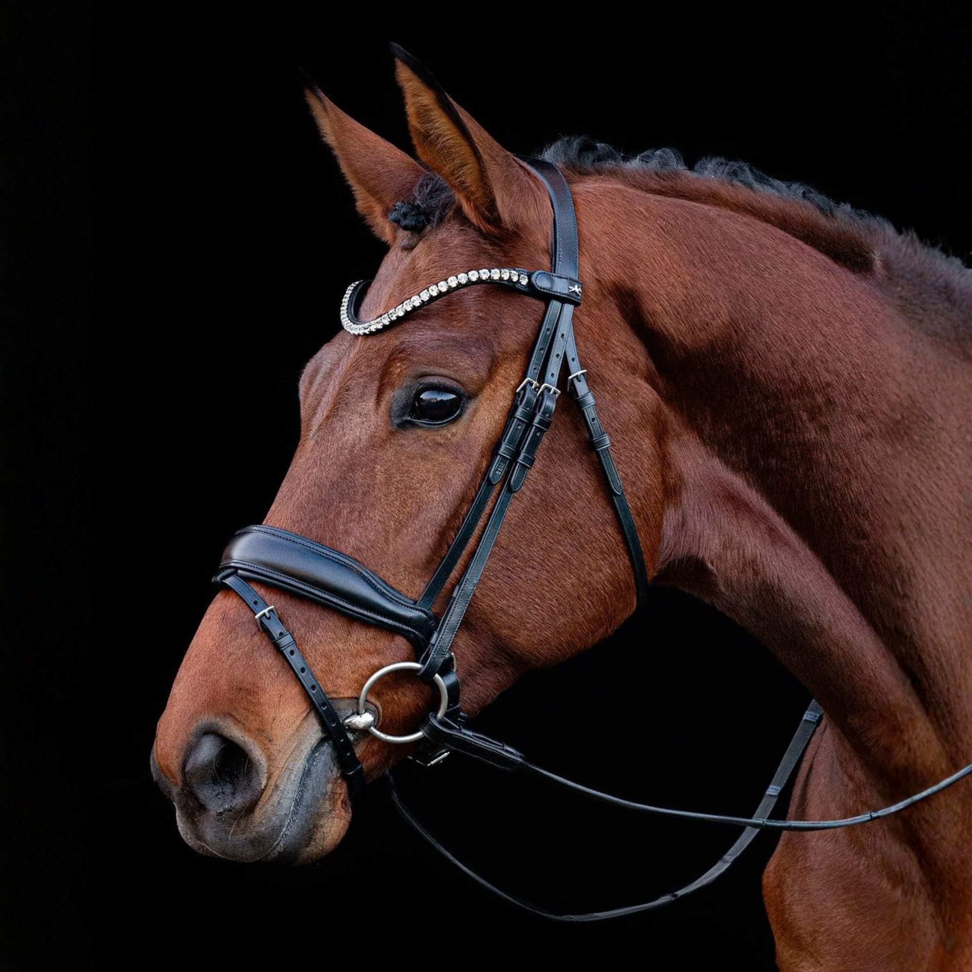 Siena ist ein Premium-Dressurzaum aus hochwertigem, pflanzlich gegerbtem Leder mit einem breiten anatomischen Nasenriemen, der nicht nur optisch ansprechend ist, sondern auch in Bezug auf Passform keine Wünsche für Ihr Pferd offenlässt. Das anatomische Genickstück sorgt für eine hervorragende Druckverteilung, und der weich gepolsterte anatomische Nasenriemen verfügt über eine Aussparung für die Jochbeine, sodass er optimal am Pferd platziert werden kann.