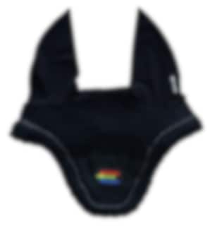 Die Fliegenohren Kim von Equiline haben ein stilvolles Design mit E-Logo in Rainbow und dem Equiline-Logo am linken Ohr. Die Fliegenohren schützen die Ohren des Pferdes im Sommer vor Insekten und ist ein stilvolles Detail für Training und Wettkampf.