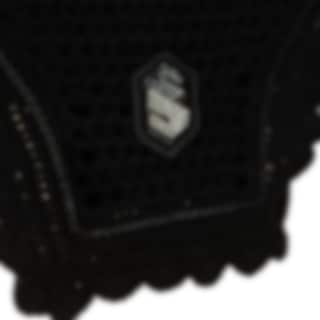 Das leichte, mikroperforierte Material fördert die Belüftung im Ohrenbereich und reduziert Irritationen durch Insekten, während es gleichzeitig zur Geräuschdämpfung beiträgt. Die Fliegenohren sind auf der Vorderseite mit dem Samshield-Logo verziert, das mit Swarovski-Kristallen dekoriert ist und eine elegante, luxuriöse Note verleiht. Für einen einheitlichen und technisch eleganten Turnierlook können sie mit der Samshield Spineshield-Schabracke kombiniert werden.
