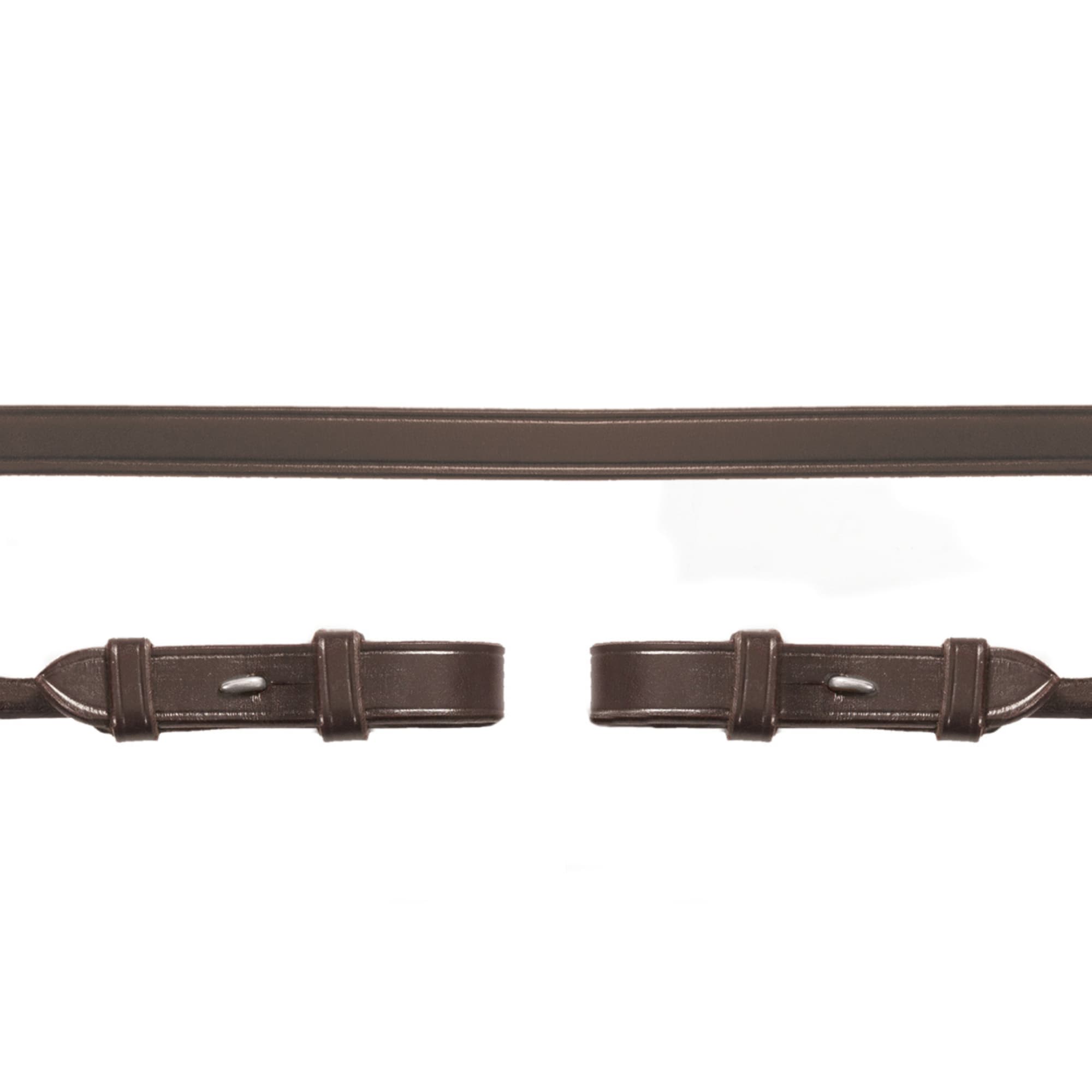 Der Zügel ist komplett aus Leder und nicht teilbar. Stattdessen hat er eine Schlaufe, mit der Sie den Zügel auf die richtige Länge einstellen können.