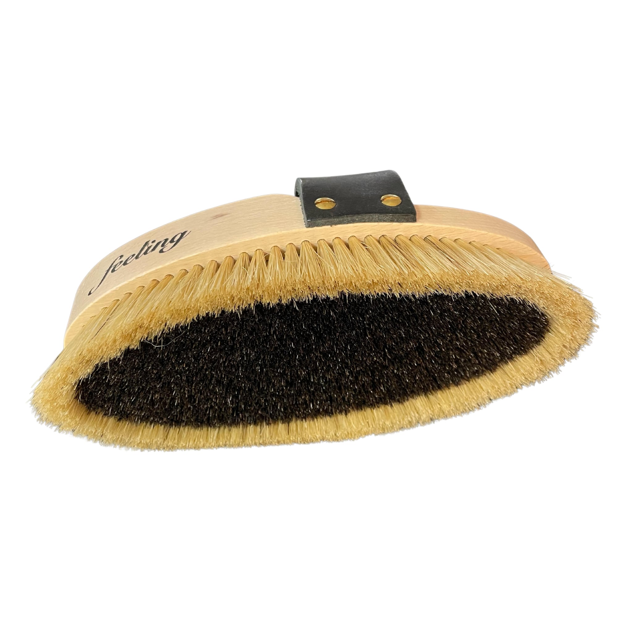 Feeling ist eine ergonomische Kardätsche aus 100% Rosshaar von William Leistner. Die Kardätsche besteht aus 100% reinem Rosshaar und hat einen anatomisch geformten Rücken, der gewölbt ist.