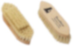 Bürste für die Fesseln aus mexikanischer Faser. Der mittlere Teil der Bürste ist leicht angehoben und somit ideal um die Fesseln des Pferdes zu erreichen und zu reinigen. Die Fesselbürste ist 22 cm lang und 6,5 cm breit.