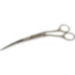 Gebogene Schere für den letzten Feinschlifffs des Pferdes vor der Show oder einem Turnier. Die Putzschere wird hauptsächlich für das Fell am Kronenrand und an den Ohren des Pferdes verwendet, wo die leicht gebogene Form der Schere wirklich zur Geltung kommt.