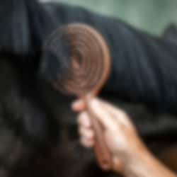 Die Bürste verfügt über ein besonders strapazierfähiges und flexibles Kunststoffpaddel, das den Bewegungen des Pferdes folgt und den Haarverschleiß reduziert. Die Kombination aus natürlichen Wildschweinborsten und Nylonborsten löst Verfilzungen mühelos, während Mähne und Schweif einen natürlichen Glanz erhalten, ohne beschädigt zu werden.