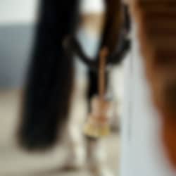 Den kompakta storleken gör hovkratsen lätt att förvara, och den stilrena läderremmen möjliggör praktisk upphängning.