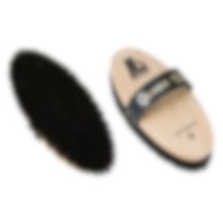 Die Queen Kardätsche verleiht dem Fell des Pferdes einen wunderbaren Glanz und kann dank der ultimativen Zusammensetzung von Rosshaar viel Schmutz aufnehmen, was es sehr effektiv macht. Das natürliche Material wirkt auch statischer Elektrizität entgegen. Der Bürstenrücken besteht aus umweltfreundlichem wasserlackiertem Buchenholz aus dem Thüringer Wald und Steigerwald mit einem von Hand genieteten Lederband von hoher Qualität.