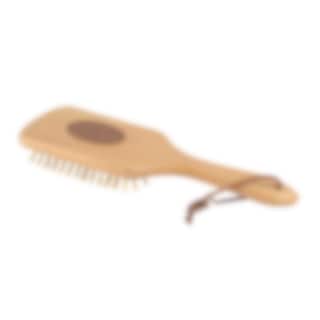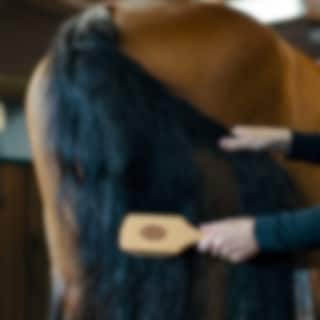 Diese Schweifbürste wird auch Fellbürste genannt, da sie sowohl für Pferde als auch für Hunde verwendet werden kann. Die Mähne- und Schweifbürste von Borstiq hat einen Holzrücken und Borsten aus Holz.