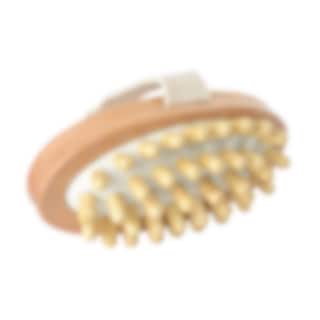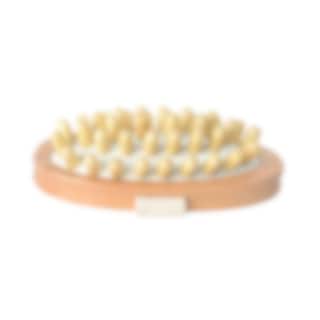 Kleine schöne Massagebürste aus Holz mit Holznoppen an den Gummi-Unterseite von Borstiq.