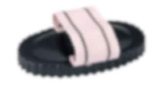 Vävband över handen. Robust ryktskrapa som även fungerar bra att använda direkt på hästen när den fäller mycket.