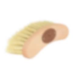 Bananenförmige Pferdebürste von Borstiq. Die Form des Bürste erleichtert die Handhabung und damit die Verwendung. Naturmaterial mit Holzrücken.