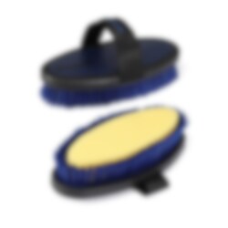 Die Bürste hat einen Schwamm in der Mitte und Borsten entlang der Kante. Die Waschbürste har einen Riemen über der Hand, was es einfacher macht, sie zu halten, während Sie das Pferd waschen. Diese Waschbürste sorgt dafür, dass auch das schmutzigste Pferd sauber wird.