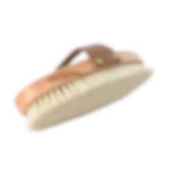 Sehr weiche Bürste in der Form eines Striegels mit einem Rücken aus Buchenholz und 100 % Ziegenhaarborsten. Die Ziegenhaarbürste verleiht dem Fell Glanz und ist dank ihrer weichen Borsten ideal für geschorene Pferde, Pferde mit dünnem Fell oder empfindliche Pferde geeignet. Die Striegelbürste ist mit einem Lederriemen für optimalen Halt ausgestattet.