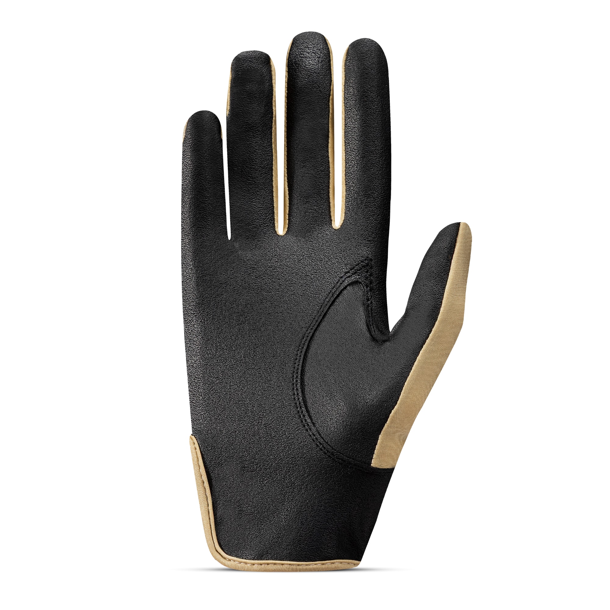 Lorraine ist ein stylischer und femininer Reithandschuh mit dezentem Glitzerlogo und einem schimmernden Band auf dem Handrücken. Doch Optik ist bei diesem sehr funktionalen und an die Anatomie der weiblichen Hand angepassten Handschuh längst nicht alles. Der Handrücken besteht aus seidenweichem Nylon mit hohem Elasthan-Anteil und sorgt für erstklassigen Tragekomfort, eine fantastische Passform und ultimative Beweglichkeit der Finger. Der Reithandschuh Lorraine ist zudem bequem, atmungsaktiv und trocknet schnell. Auf der Innenhand kommt ein weiches und dünnes PU-Material zum Einsatz, das einen sicheren und zuverlässigen Halt am Zügel gewährleistet, ohne das nötige Feingefühl beim Kontakt mit dem Pferdemaul zu beeinträchtigen.