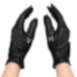 Die Handschuhe sind mit "V" und "H" gekennzeichnet, wobei "V" für das schwedische vänster (links) und "H" für höger (rechts) steht.